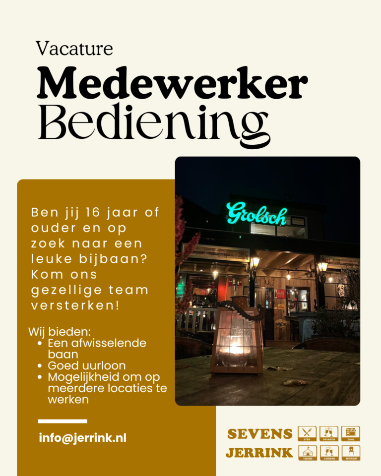 - Helpen bij feestjes en partijen van Jerrink: zorgen dat alles soepel loopt en iedereen een topavond heeft
